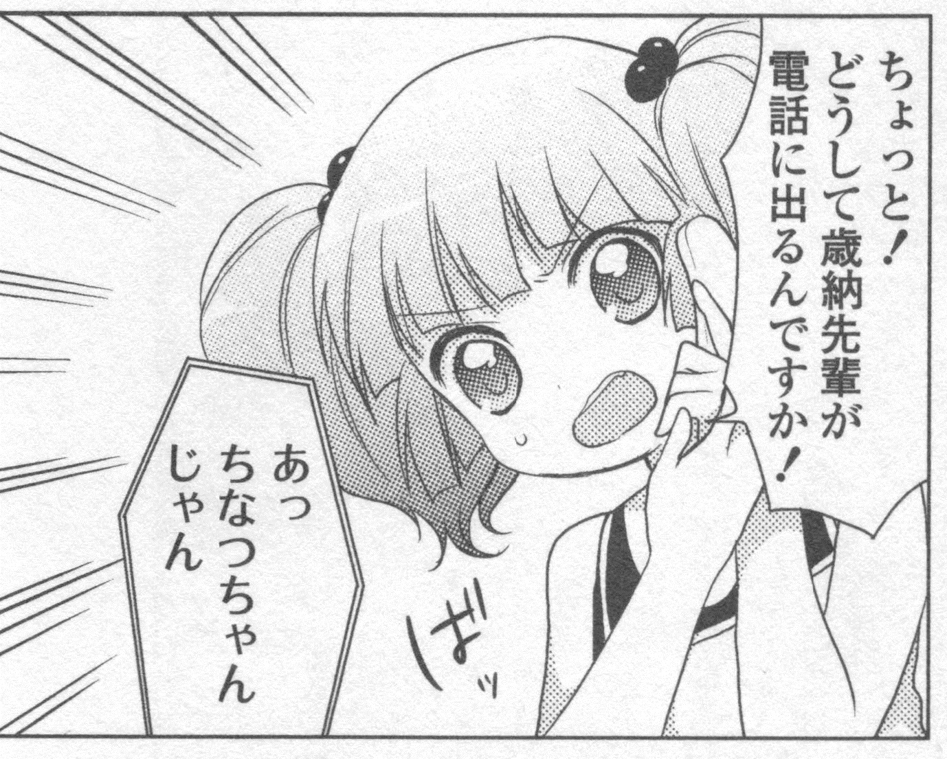・京子もちなつの様子がおかしいと電話越しに気付き、家まで駆けつける