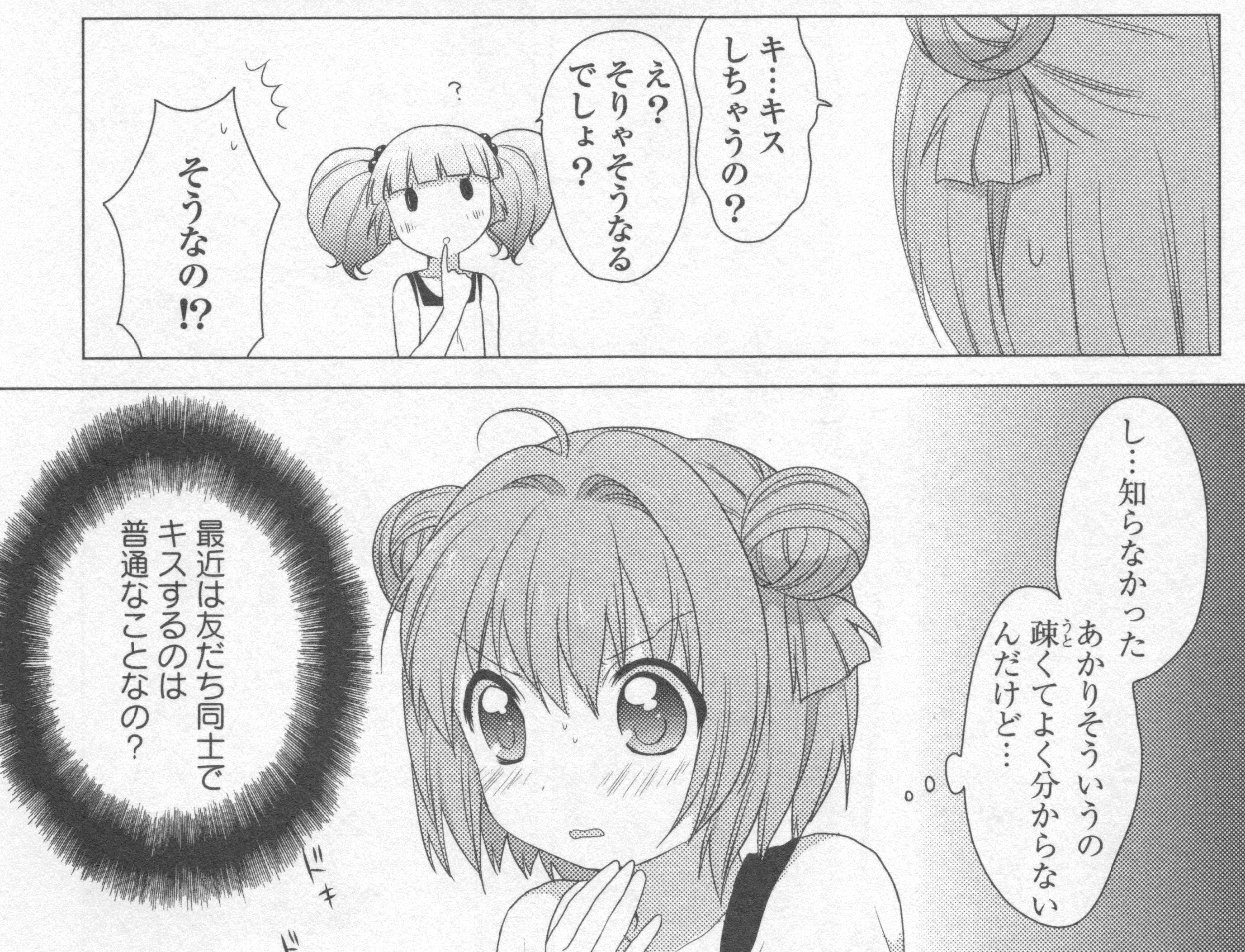 ちなつと京子、結衣とあかりのキスの価値観は似てますね。
