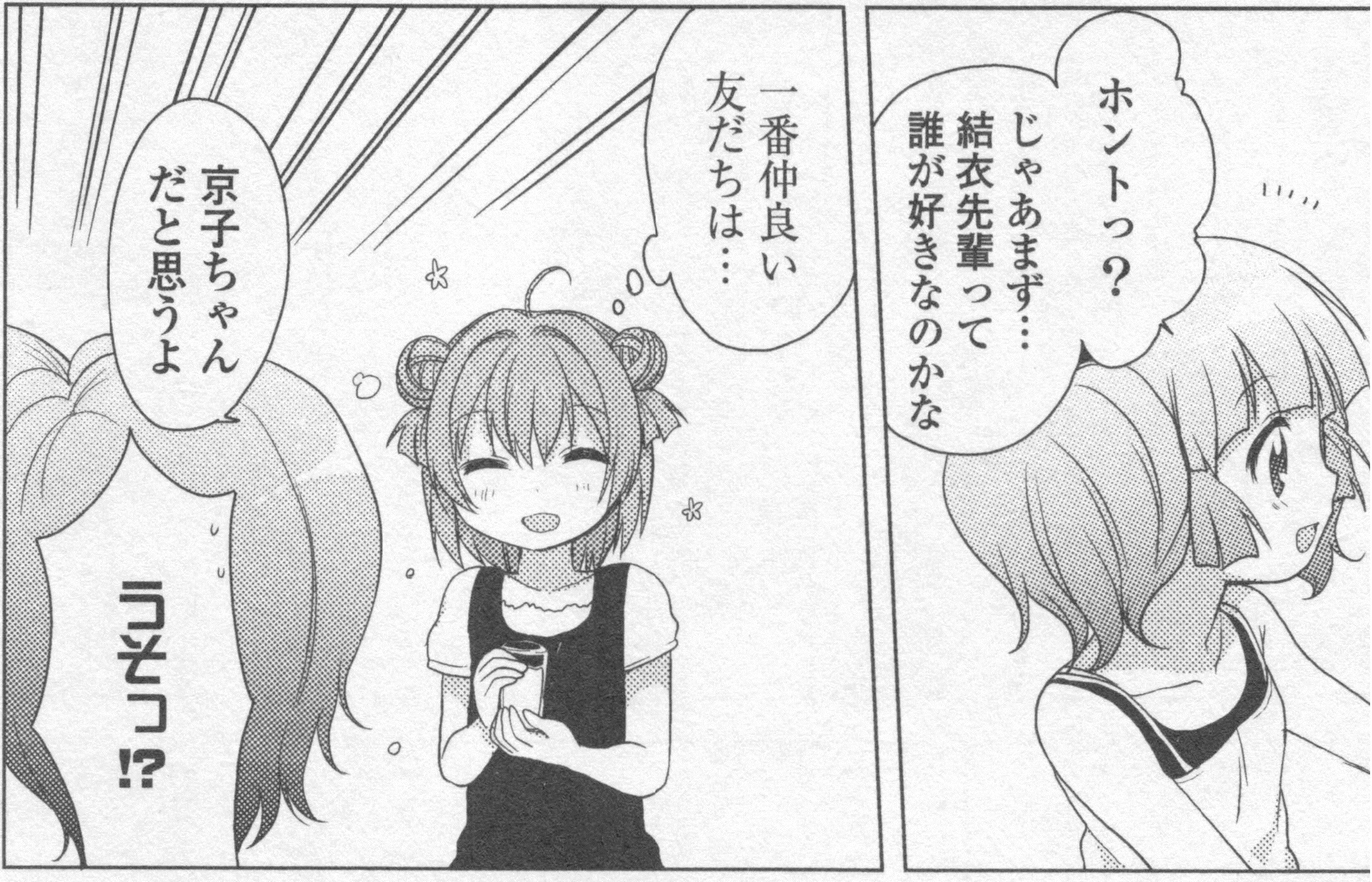「結衣が一番好きなのは誰か」という問いに京子と答えます。